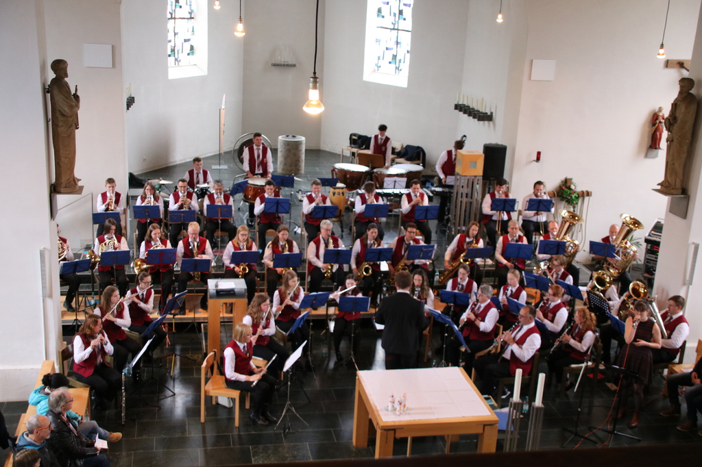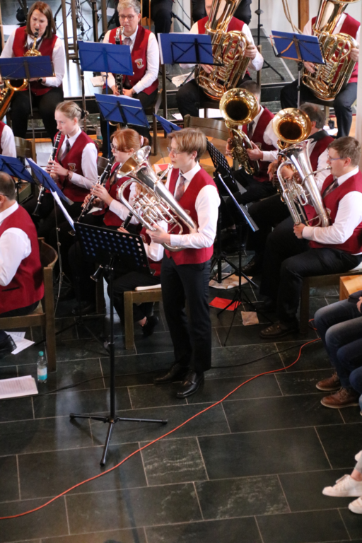 Am Sonntag (21.04.2024) konnten wir in der katholischen Kirche St. Peter und Paul unsere Zuhörer begeistern. Als wir mit ‚Das große Tor von Kiew‘ unser Konzert eröffnen durften, war die Kirche bis auf einige wenige Plätze belegt. In den darauffolgenden 60 Minuten haben wir ein abwechslungsreiches, aber auch anspruchsvolles Programm präsentiert. Die Höhepunkte des Abends waren das Euphonium-Solo von Marc Reinger sowie die beiden Stücke mit unserer Gastsängerin. Unser Dank gilt daher nicht nur unserem Dirigenten Maximilian Schaffrinna und unserem Publikum, sondern auch Anna Spadinger und Marc. Mit großem Applaus wurden wir nach unserem letzten Stück verabschiedet und konnten anschließend gemeinsam das Wochenende ausklingen lassen.