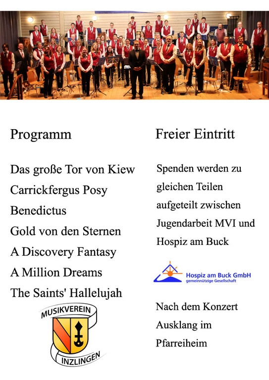 Nach zwei Jahren Pause freuen wir uns, Sie wieder zu unserem Jahreskonzert am Samstag, den 10.12.2022, um 20.00 Uhr in der Erstelhalle in Inzlingen einladen zu dürfen. Der Einlass ist ab 19.00 Uhr, der Eintritt kostet 5 Euro. Unser Dirigent Daniel Meyer hat mit uns ein abwechslungsreiches Programm einstudiert. Nach dem Konzert können Sie zu den Klängen des Duo Schwarz das Tanzbein schwingen und mit uns bei einem Gläschen Wein oder einem Bier den Abend ausklingen lassen.