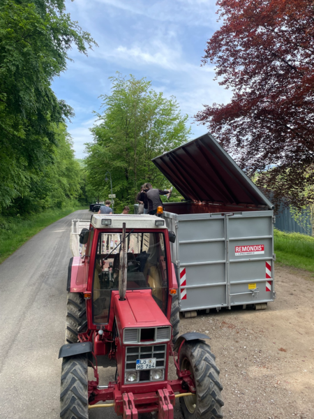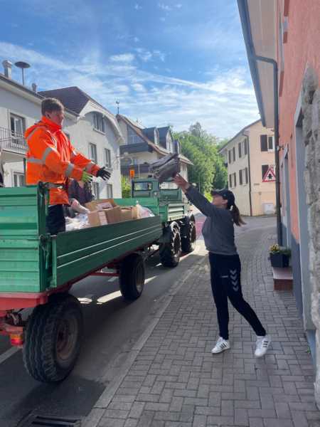 Schon drei Tage später waren unsere jüngeren Vereinsmitglieder bei der Altpapiersammlung gefragt. Mit zwei Traktoren und dem Unimog wurden jegliche Straßen im Ort abgefahren, um die Papierpäckchen einzusammeln und diese dann in den Containern zu versorgen.