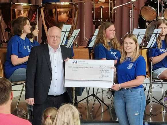 Beim jährlichen Jugendkonzert konnten am 07.07.2024 unsere Nachwuchsmusiker ihr Können unter Beweis stellen. Dieses Jahr gab es jedoch auch einen besonderen Programmpunkt: Zu Gast war die Volksbank Dreiländereck, welche uns den Spendenscheck für das neue Glockenspiel überreicht hatte.