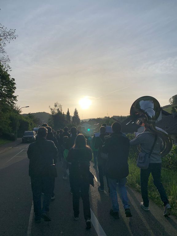 Wie auch die letzten Jahre war der „Mai ist gekommen“ bei unserem Maiwecken häufig zu hören. Einziger Unterschied dieses Mal: Wir konnten den Regenschirm zu Hause lassen und wurden dafür endlich wieder von Sonnenstrahlen begleitet.